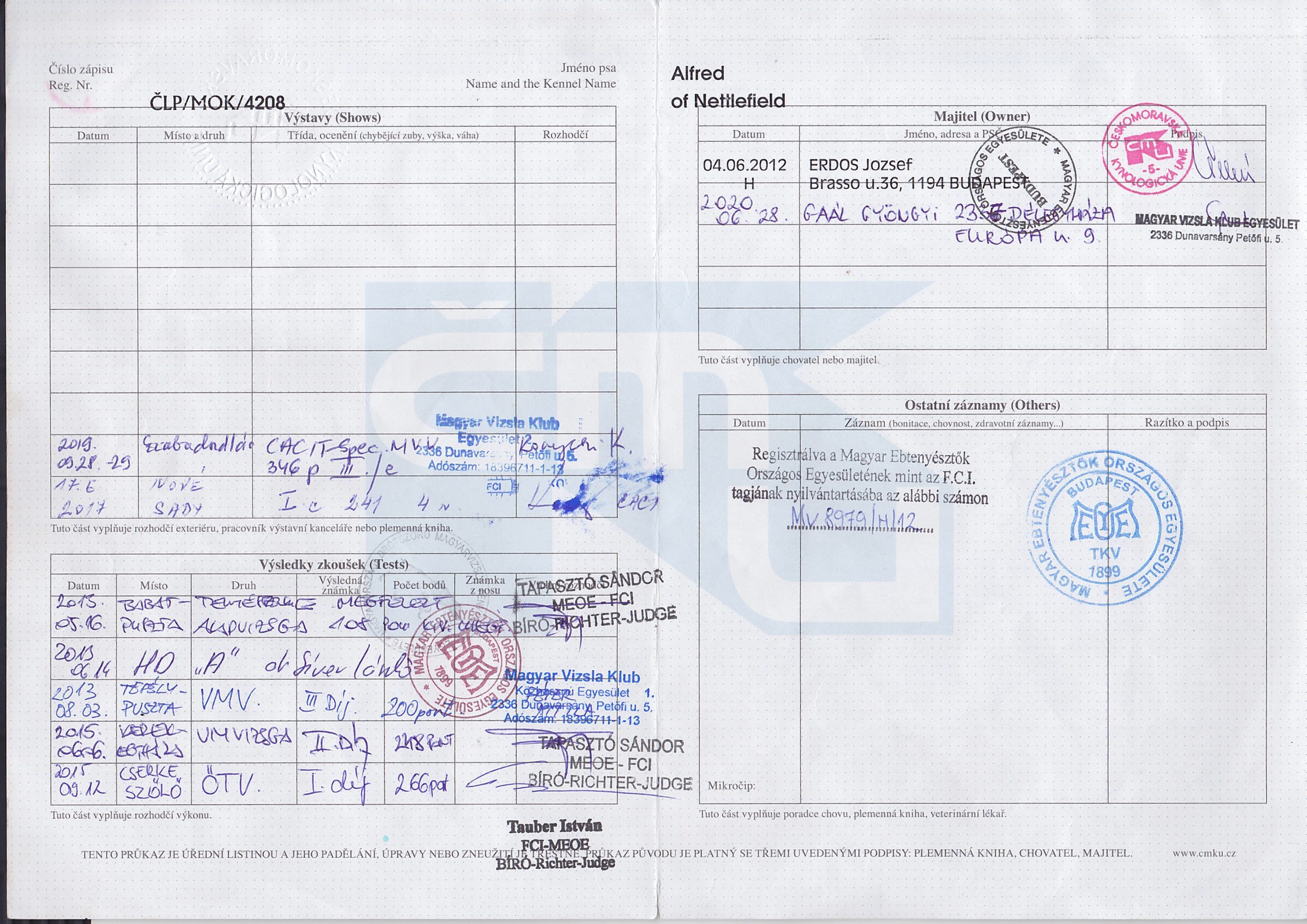 | 12.09.2015 | Cserkeszőlő | ÖTV | Autumn breeding exam I. prize |